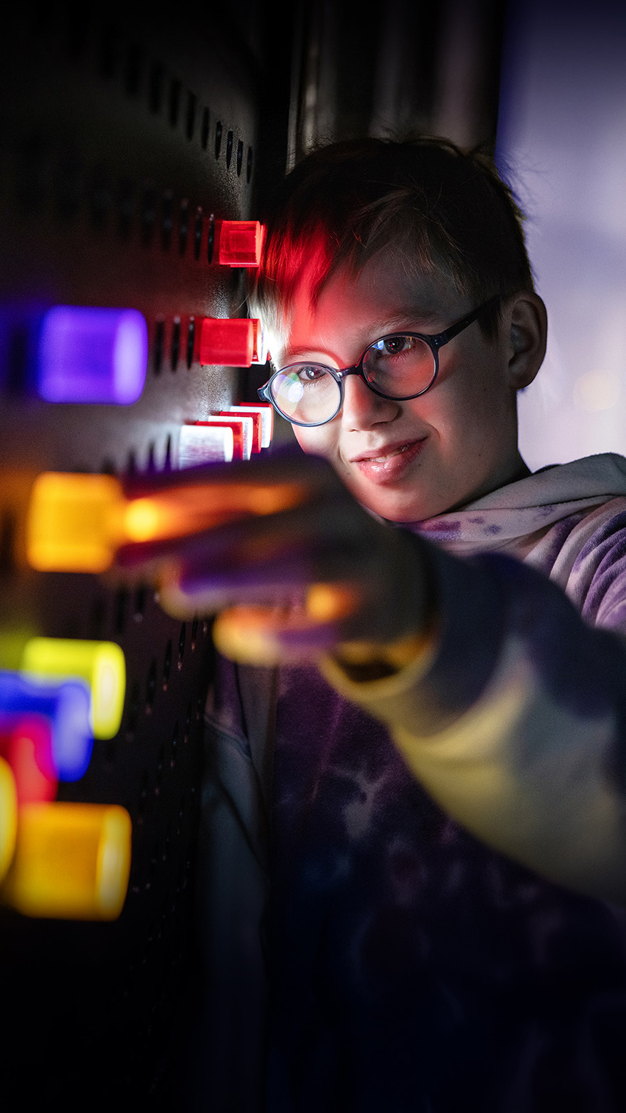 Seikkailutehtaalle astuessa kävijä sukeltaa suoraan vanhan nahkatehtaan koneistoon – hihnoihin, putkistoihin ja teolliseen muotokieleen.