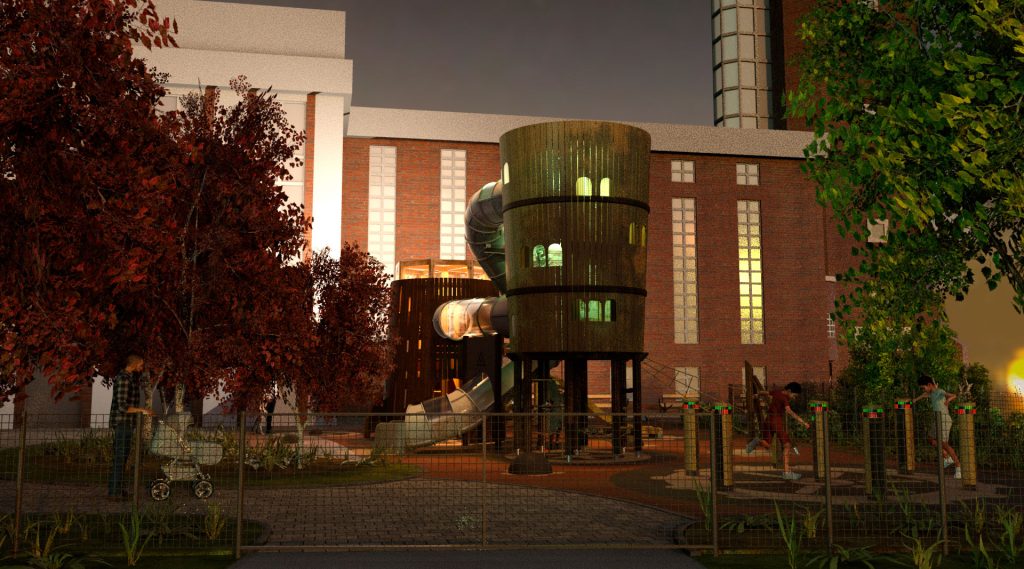Seikkailutehtaalle astuessa kävijä sukeltaa suoraan vanhan nahkatehtaan koneistoon – hihnoihin, putkistoihin ja teolliseen muotokieleen.
